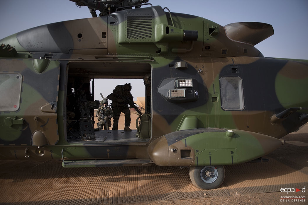 2018_ECPAD_014_B_005_005/A.Karaghezian/ECPAD.Embarquement du groupe appui du Groupement de Commandos de Montagne à bord du NH90 Caïman. Mali, 2018.